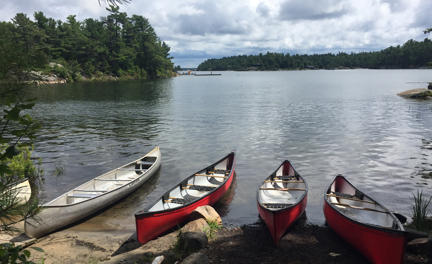 We will stay two nights, using the next day to dinghy around the area and visit The Ojibway Club, a vast lodge on its own 42 acre island, built around 1906 for rich holidaymakers. In 1946 it was sold to the Pointe au Baril Cottage Owners Association and is now their community centre, run very much like a country club but with facilities for children, too. We tie up our dinghy at the docks, which boast some very nice speedboats, walk the trails and have a pleasant lunch there.
